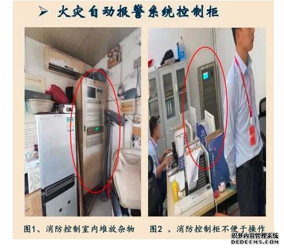 6、常见问题 消防控制室内堆放杂物、设置值班人员以外的办公场使用,且有与消防设施无关的电气线路穿过,控制柜的摆放位置不便于操作。