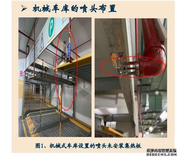 16、常见问题 机械式汽车库在载车板处未设置喷头,或设置的侧喷未安装集热板,导致汽车停放部位不在喷头直接保护范围。